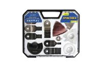 Набор насадок №8 ПРАКТИКА используется совместно с многофункциональным инструментом. Применяется при обработке дерева, ДСП, фанеры, пластика, листов ГКЛ, стали, цветных металлов, плитки, камня. Набор включает пятнадцать насадок, позволяющих производить различные виды работ: выборка пазов, подрезание внутренних углов, вырезание проемов, резка плинтусов, пластиковых труб и т. д.